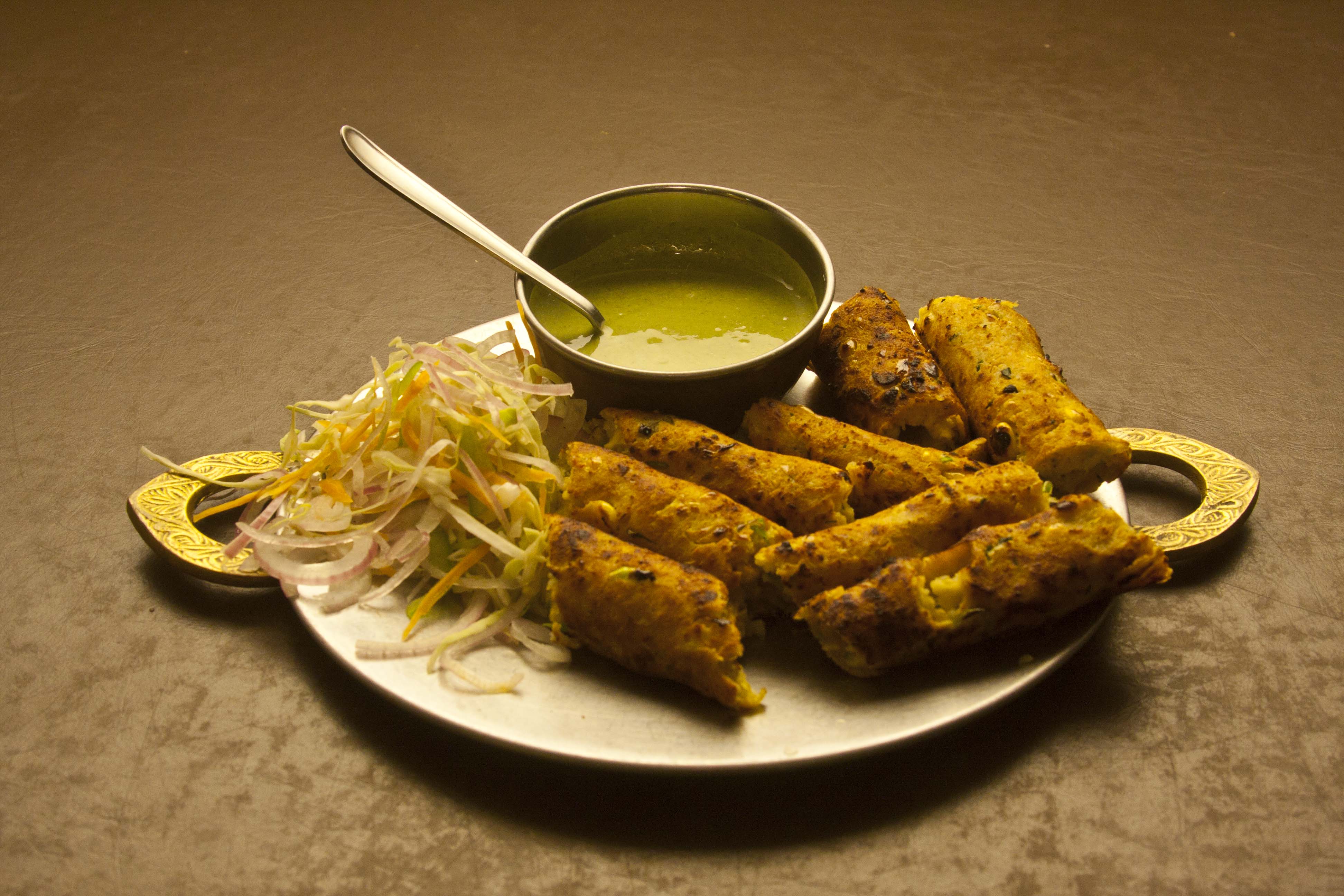 2) For the filling – Boiled aloo with chat masala OR Soaked Boondi OR Chopped Onions OR Boiled aloo with soaked and boiled brown channa with chat masala OR white dry peas soaked cooked and sautéed in oil jeera, salt and turmeric powder OR Green Moong Sprouted and lightly steamed (this is what I use for my family- healthy and tasty).