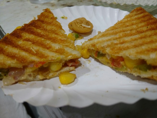 Our first stop was at links we relished the famous murukku sandwich, followed by the corn canapé, Mexican chaska and the corn cheese grilled sandwich. We eyed the special gola but left it for the next time to taste.