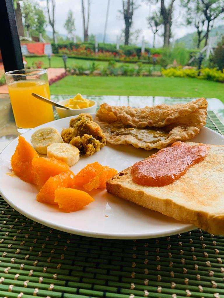 In the morning we woke up to total mist and light drizzle. It was a site to cherish. Our breakfast was yummy homemade jam by Arun’s mom ( you might find it on the shelf soon, do grab it when you visit) the poori, dosa and vegetable idlies were pipping hot. Special mention to the orange juice that was made using fresh orange from their own garden.