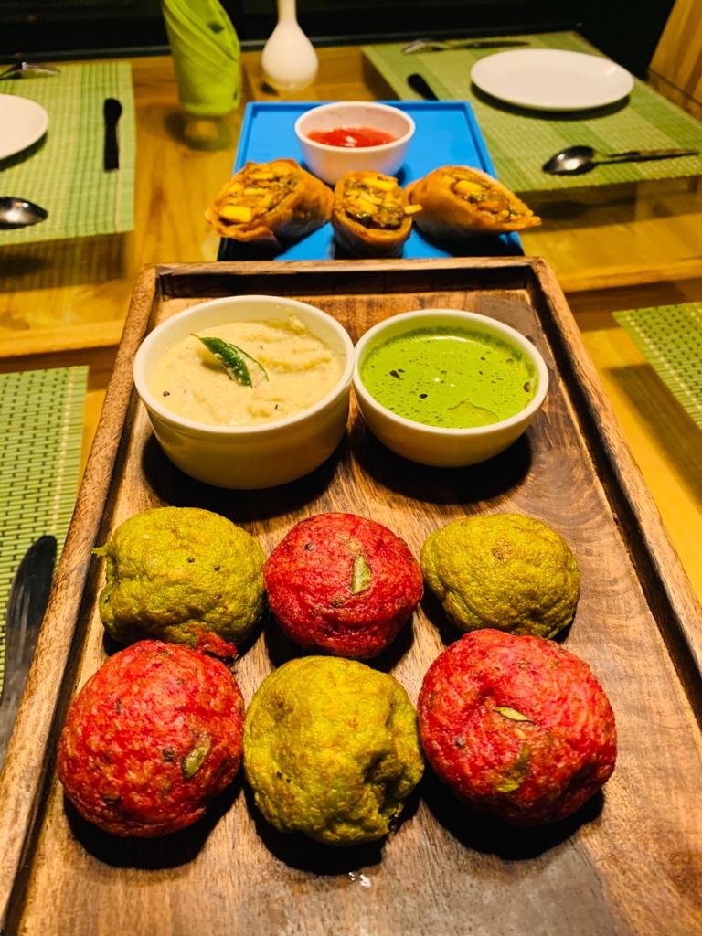 We spotted a bison ( gaur/ indian bison)Hot mint and beet paniyaram and south indian spring rolls