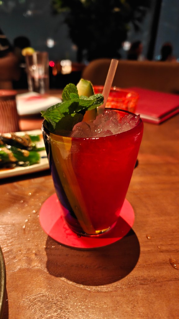 Even the cocktails, something I am particularly picky about. I am always the first to complain about excessive sugar syrup in India. Yet in Singapore, despite specifically requesting otherwise, what arrived was overly sweet, artificially coloured and honestly disappointing.